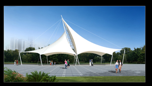 膜結(jié)構(gòu)作為一種新型建筑形式,所用的材料和技術(shù)均不同于傳統(tǒng)結(jié)構(gòu)。膜結(jié)構(gòu)以造型學、色彩學為依托,可結(jié)合自然條件及民族風情,根據(jù)建筑師的創(chuàng)意建造出傳統(tǒng)建筑難以實現(xiàn)的曲線及造型。膜結(jié)構(gòu)的特點要求在方案設(shè)計時考慮結(jié)構(gòu)的可行性與美觀性相結(jié)合,根據(jù)現(xiàn)場條件與客戶需求,設(shè)計出美觀實用的膜結(jié)構(gòu)造型。